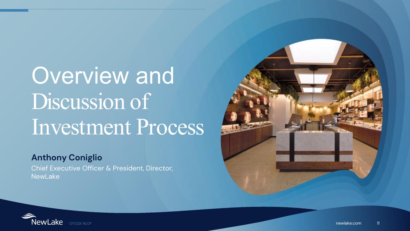 newlake.com 11OTCQX: NLCP Overview and Discussion of Investment Process Anthony Coniglio Chief Executive Officer & President, Director, NewLake