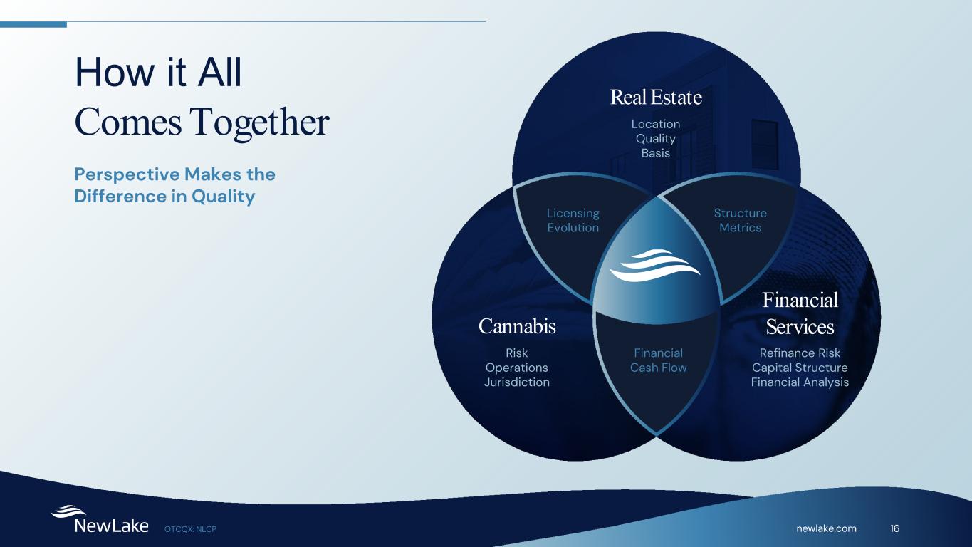 newlake.com 16OTCQX: NLCP How it All Comes Together Perspective Makes the Difference in Quality Real Estate Location Quality Basis Financial Services Refinance Risk Capital Structure Financial Analysis Cannabis Risk Operations Jurisdiction Financial Cash Flow Licensing Evolution Structure Metrics